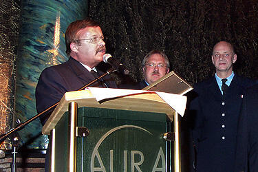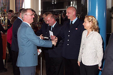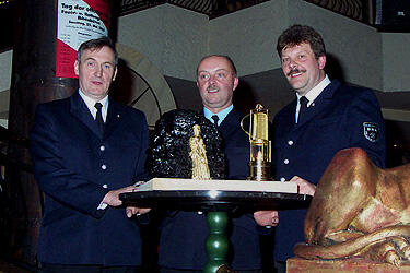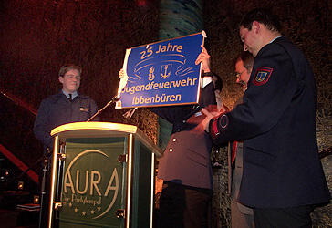 Diesmal ein schöner Anlass für Bilder der Feuerwehr Ibbenbüren.Rund 500 Gäste feierten am Freitag, dem 11. April 2003, in der Ibbenbürener Großdiskothek "AURA" gemeinsam mit der Feuerwehr deren Doppel-Jubiläum: