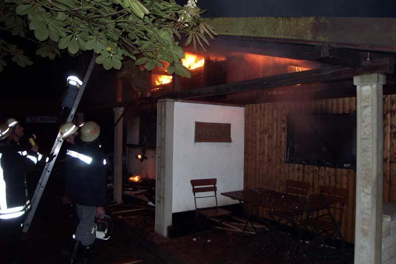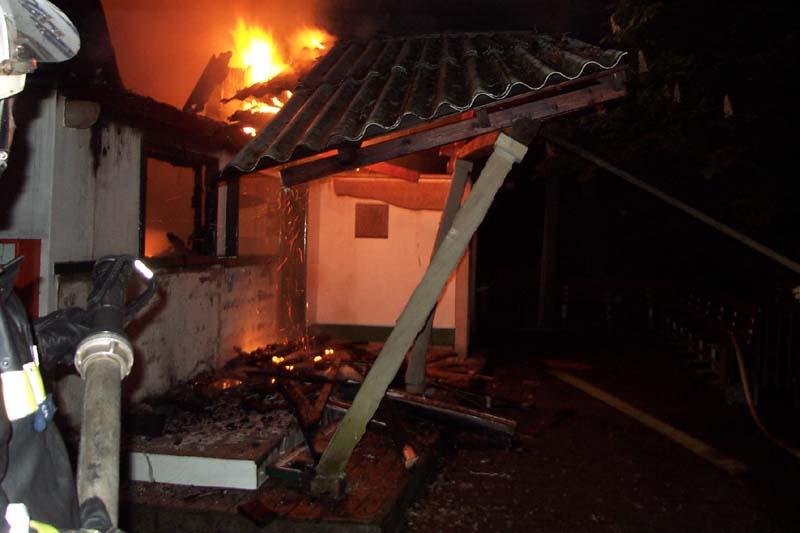 Zum Brand der "Almhütte", eines Ausfluglokals direkt im Waldgebiet am Hermannsweg in den Dörenther Klippen gelegen, wurden die hauptamtliche Wache, der Löschzug Dörenthe und der Löschzug Stadtmitte 1 der Feuerwehr Ibbenbüren am Dienstagmorgen, gegen 0.20 Uhr, alarmiert.Aus bislang ungeklärter Ursache war das beliebte Lokal mit Imbissbetrieb in Brand geraten und von einem Zeugen als "Feuerschein im Wald" gemeldet worden. Zu dem Zeitpunkt muss das Feuer aber schon eine ganze Weile gebrannt haben, denn bei Eintreffen der ersten Kräfte stand das Gebäude bereits lichterloh in Flammen.