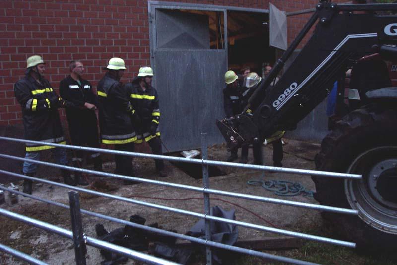 Die Dörenther Kameraden hatten nach dem Abbau der B-Leitung und Einsatzende jedoch keine Langeweile: Sie durften sofort anschließend zu einer Tierrettung ausrücken. In kurzer Zeit konnte ein Bulle aus einer Güllegrube befreit werden...