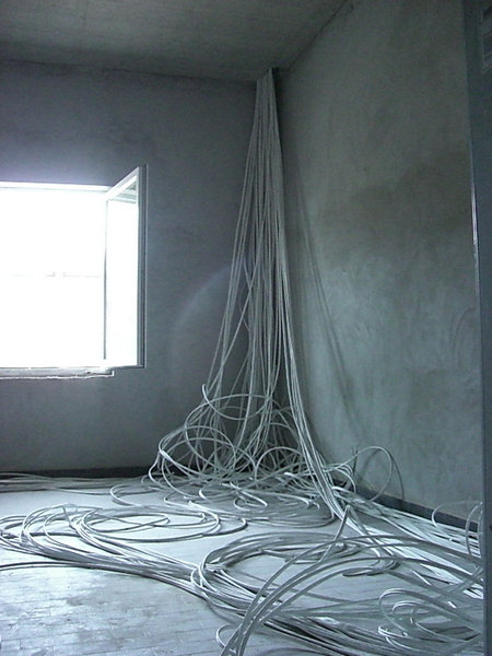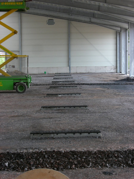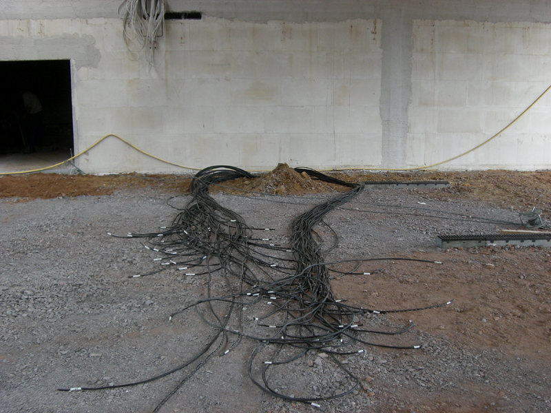 In der Fahrzeughalle hat die Elektrofachfirma die Steuerkabel für die Torsteuerungen schon verlegt. Der Kabelbaum umfasst ca. 70 Einzelkabel!