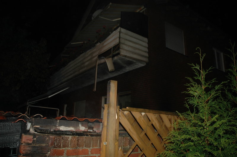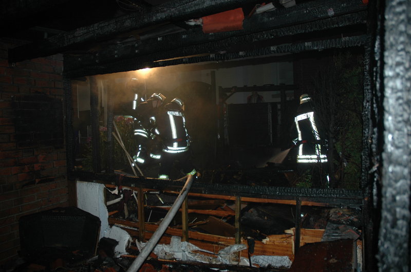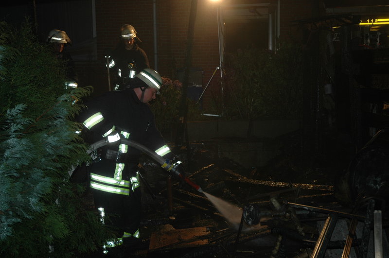 Die ersten Kräfte fanden die Holzkonstruktion in Vollbrand vor, so dass es galt ein Übergreifen auf das Wohnhaus und Nachbargebäude zu verhindern.