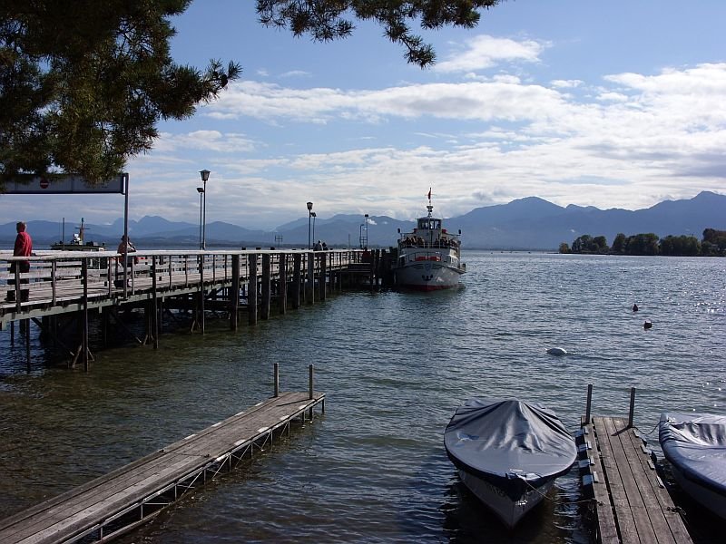 Dienstags fuhren wir zum Chiemsee. Mit geliehenen Fahrrädern machten wir uns über eine wunderschöne Radstrecke auf den Weg von Seebrugg zum ca. 1 Stunde entfernten Gstadt. Von dort aus fuhren wir mit dem Schiff zur Herreninsel um das Königsschloss zu besichtigen. Bei herrlichstem Wetter bot das Anwesen dort einen imposanten Eindruck und die Führung war auch sehr interessant.