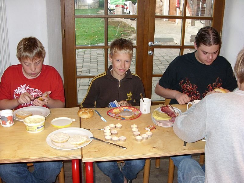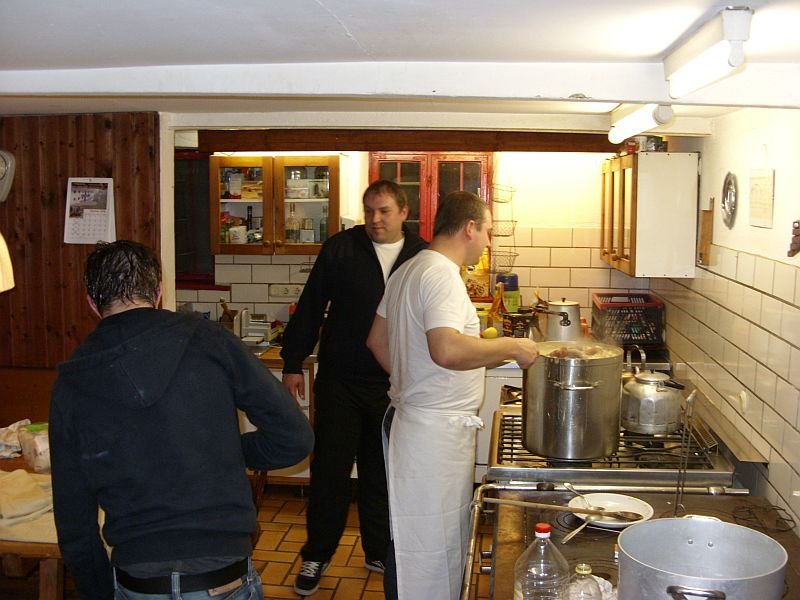 Die ganze Woche über wurde natürlich wieder selber gekocht. Der täglich wechselnde Küchendienst entließ natürlich nur "beste Hausmannskost" aus der hauseigenen Küche. So war von "Peter's lustigen Nudeln", "Schüppe's Alpseeschnitzlen", "Fleischpflanzerln mit Erdäpfeln und Blaukraut", "Schwarzwälder Bratwurst mit Kartoffelbrei" bis hin zu "Uli's (unnachahmlichem) gutem westfälischen Erbseneintof" wieder alles dabei.