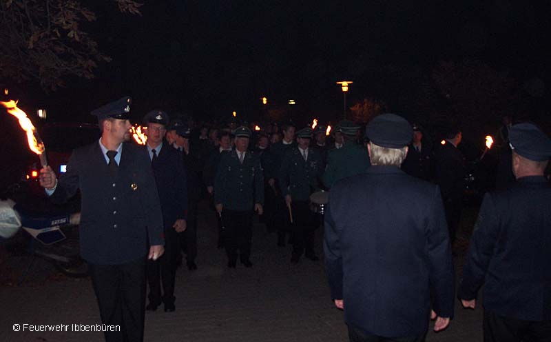 Mit einem Großen Zapfenstreich beendete die Feuerwehr Ibbenbüren am Samstag, dem 18. Oktober, die Feierlichkeiten und Veranstaltungen im Jubiläumsjahr 2003.Angefangen hatte das Jahr mit der offiziellen 125-Jahr-Feier, am 11. April, in der Großdiskothek AURA. Und am 25. Mai wurde am Tag der offenen Tür der Bevölkerung eindrucksvoll demonstriert, was Feuerwehrs und die anderen Hilfsorganisationen heutzutage zu leisten im Stande sind.