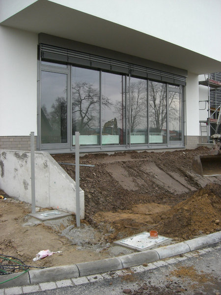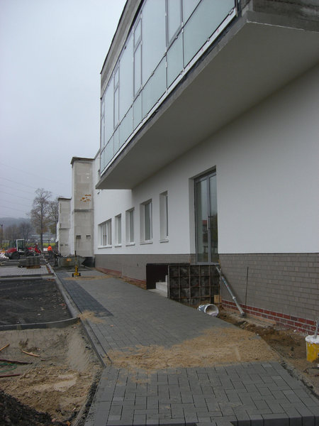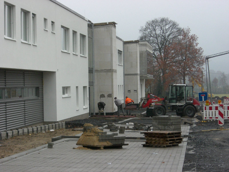 Im Außenbereich gehen die Pflasterarbeiten an den Parkplätzen zum Niedersachsenring weiter.