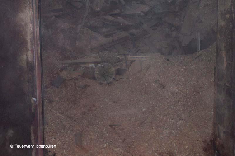 Insgesamt wurden so etwa 30 Kubikmeter Material ins Freie befördert und dort abgelöscht. Und immer wieder waren kleinere Glutnester oder auch angesengte Holzstücke darunter.
