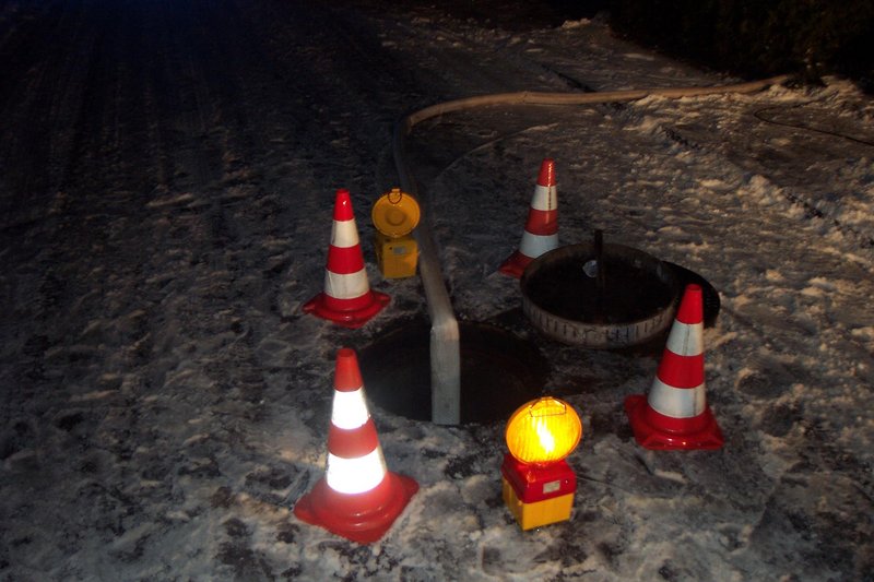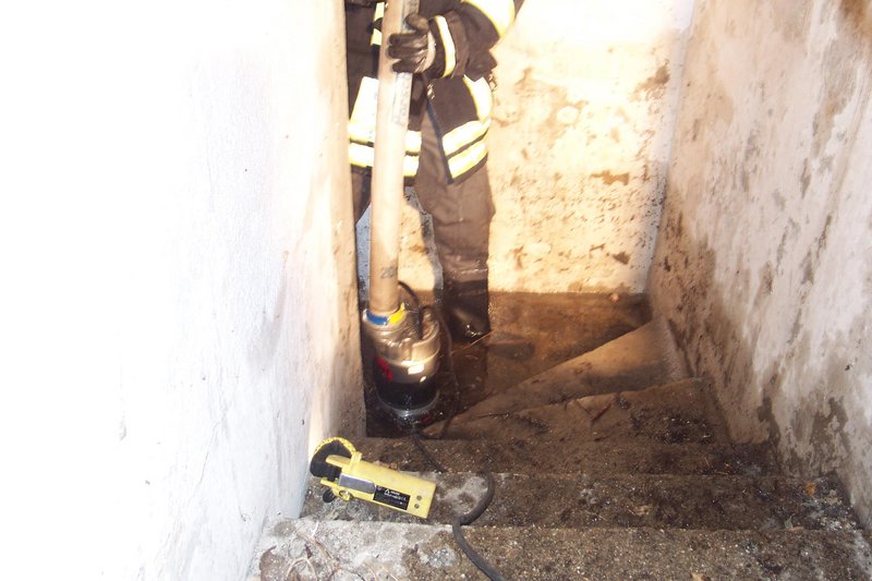 Nach einem Rohrbruch (bei -2°C) stand der Keller eines Wohnhauses 60 cm hoch unter Wasser. Absperren des Wasseranschlusses und Auspumpen des Kellers.