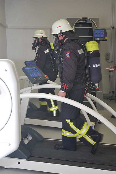 -ms- Atemschutzgeräteträger sind bei der Feuerwehr ein unverzichtbarer Bestandteil bei fast jedem Einsatz. Um sich auch zu dem Kreis der Atemschutzgeräteträger zählen zu dürfen, steht jedem Feuerwehrmann als erstes die Tauglichkeitsuntersuchung nach G26 bevor. Bei dieser wird neben diversen Untersuchungen auch ein Belastungs-EKG sowie ein Lungenvolumentest durchgeführt. Auch muss die Lunge einmal durchleuchtet werden.