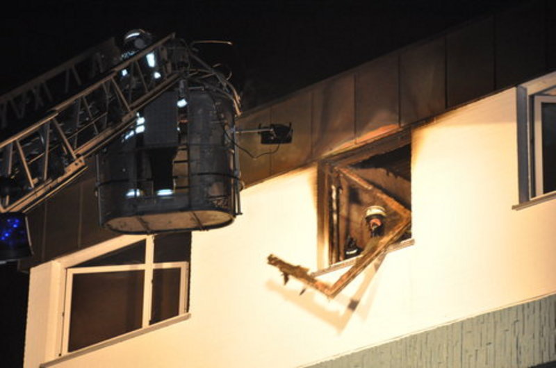 Feuer: Zimmerbrand, Flammen aus Fenster