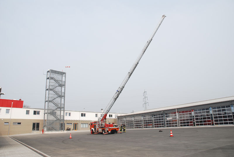 Der größte Teil des Tages bestand danach aus praktischen Übungen, die auf dem Gelände der neuen Feuer- und Rettungswache mit dem Übungsturm unter hervorragenden Bedingungen abliefen.