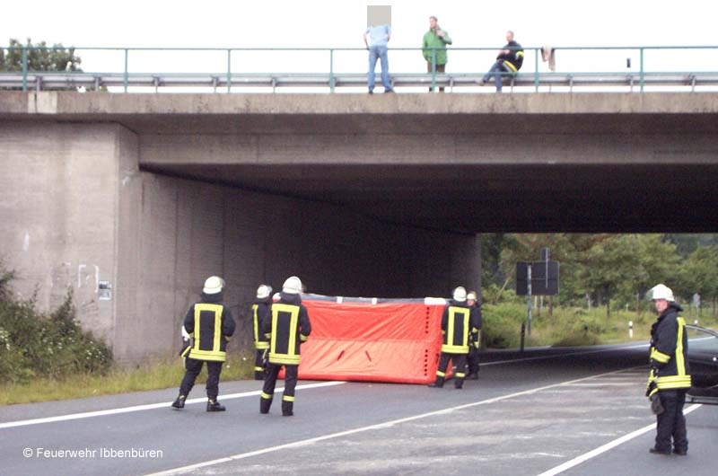 Ibbenbüren. Am frühen Sonntagmorgen wurde die Feuerwehr Ibbenbüren mit dem Alarmstichwort "Person droht zu springen" alarmiert.Auf der Autobahnbrücke der Anschlussstelle Ibbenbüren (11) der BAB 30 / Münsterstraße stand eine männliche Person und drohte damit, hinab zu springen.