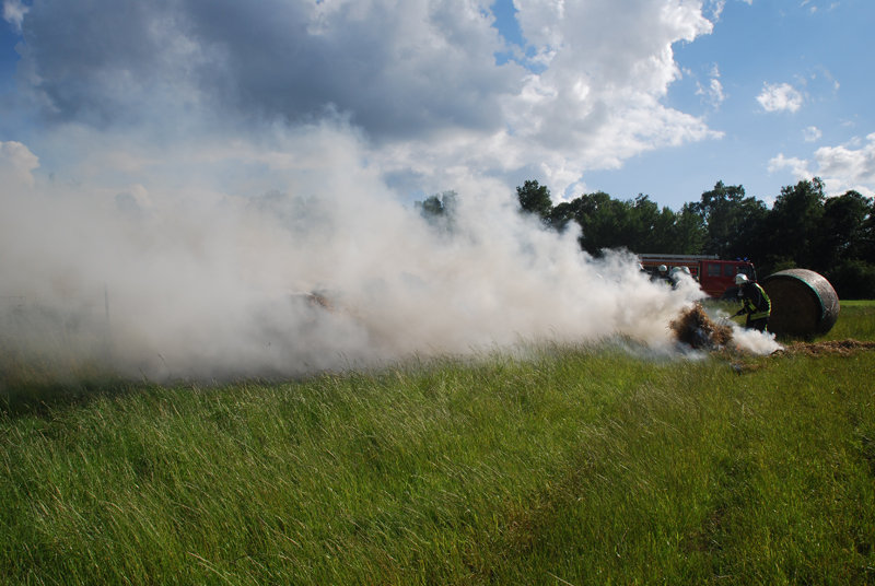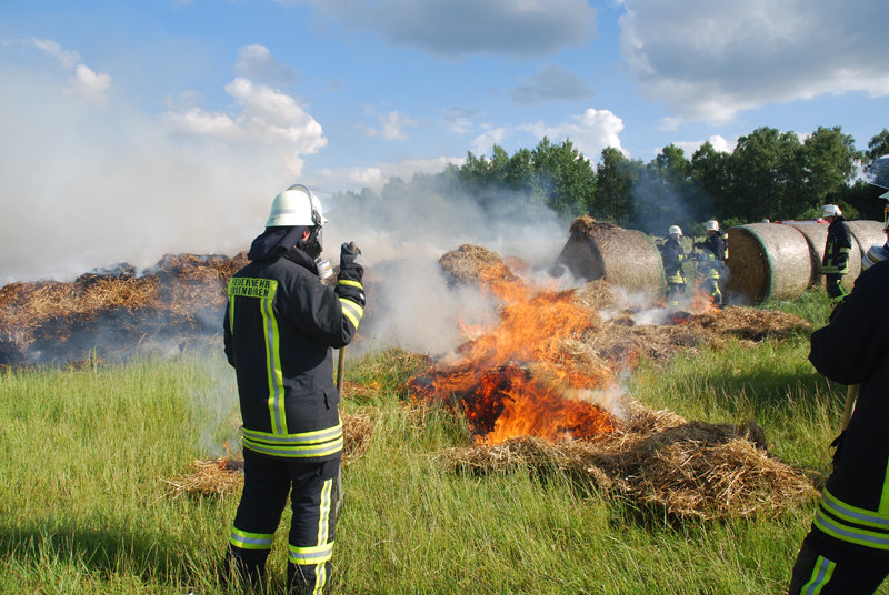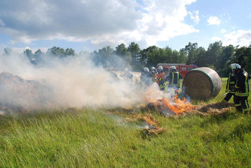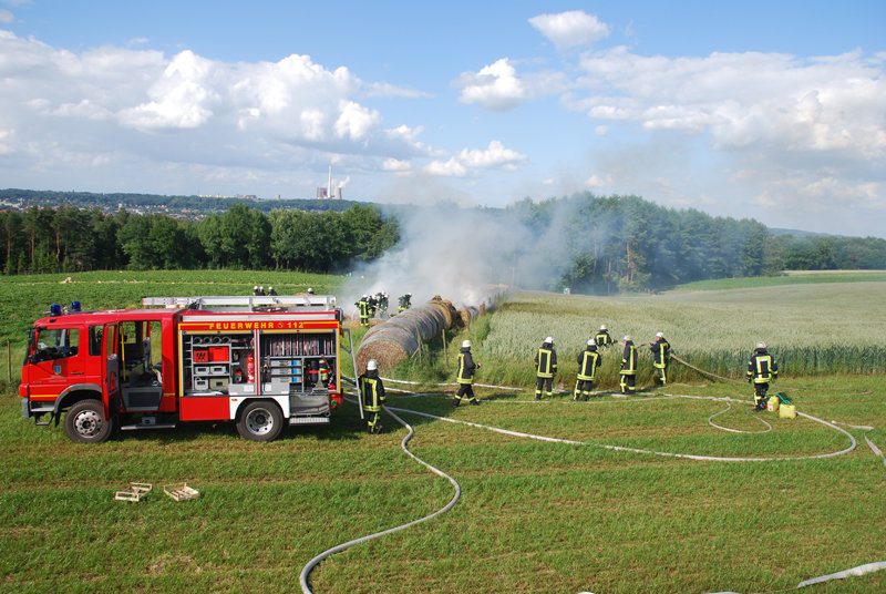 Feuer: Flächenbrand, brennen Strohballen
