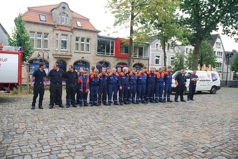 Mit 39 Kameraden aus allen vier Löschzügen der Feuerwehr Ibbenbüren und 9 Kameraden des THW Ortsverbandes Ibbenbüren stand wie in jedem Jahr eine schnauferlerprobte Truppe für die bevorstehende Tagesveranstaltung in der Innenstadt bereit.