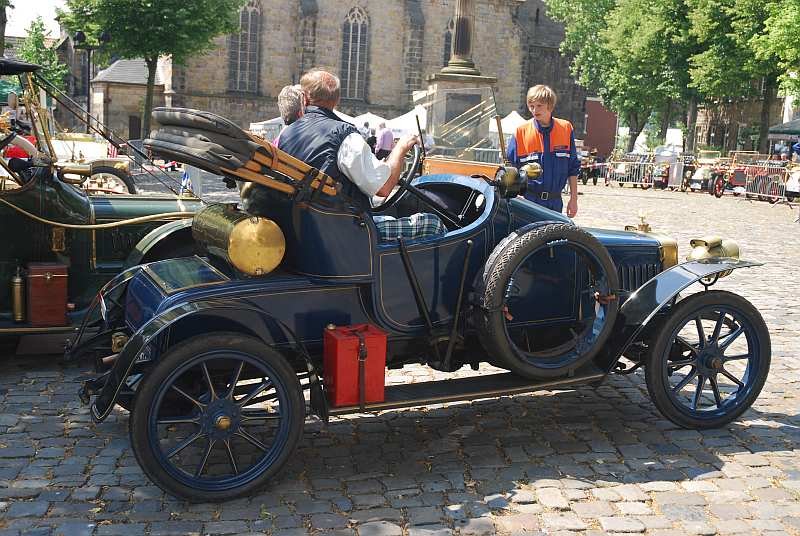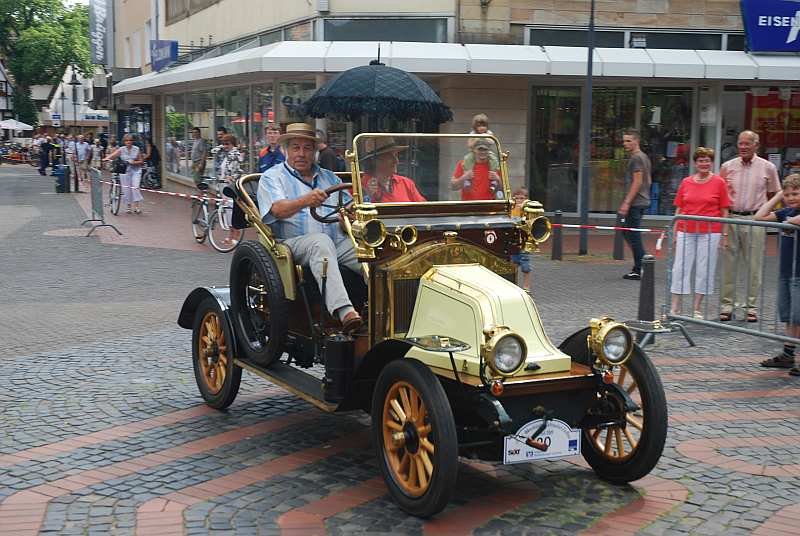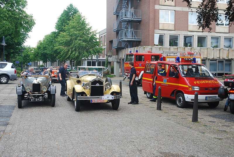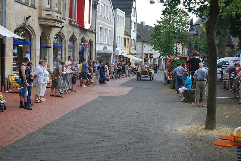 Die Fahrzeuge treffen nach ihrer Rundfahrt durch das schöne Tecklenburger Land am Rathaus ein und werden von dort aus im Minutentakt auf die Strecke gelassen. Eine Meldung der Rathaustruppe an den Einsatzleitwagen der Feuerwehr am Kirchplatz über das als nächstes startende Schnauferl, versetzen den Moderator der Veranstaltung in die Lage, jedes durch die Stadt zuckelnde Fahrzeug passend anzumoderieren und die zahlreichen Zuschauer mit den passenden Informationen zu versorgen.