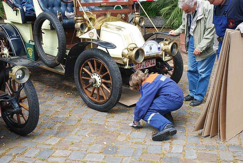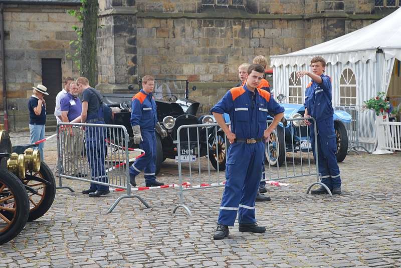 Nachdem alle Schnauferl auf dem Kirchplatz eingetroffen sind, wird der Platz wieder der Öffentlichkeit zugänglich gemacht, so dass alle Interessierten die Fahrzeuge während der Pause der Teilnehmer in aller Ruhen bestaunen können.