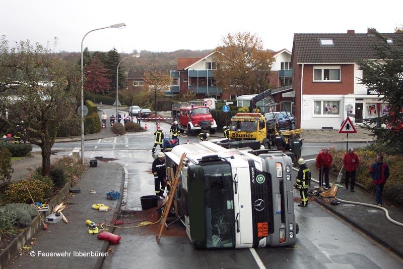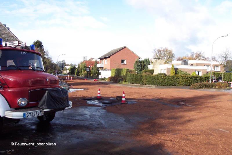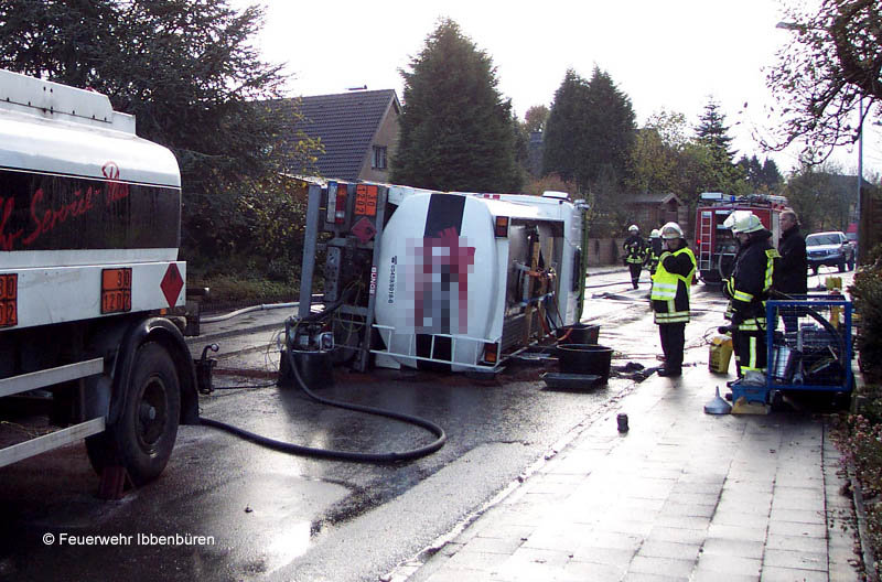 Text mit freundlicher Genehmigung der Ibbenbürener Volkszeitung (IVZ). Dort veröffentlicht am 15.11.2004. Artikel von Henning Meyer. Fotos: Feuerwehr IbbenbürenTanklastwagen umgestürzt