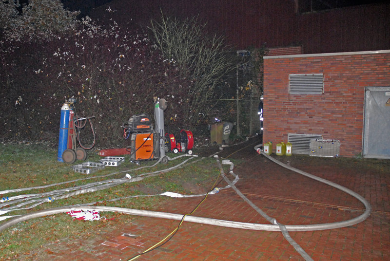 Desweiteren wurden während der Löscharbeiten ca. 15 Gasflaschen aus dem Gebäude sicherheitshalber ins Freie verbracht.