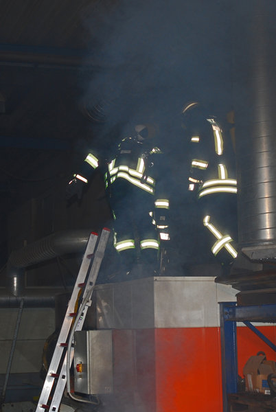 In der Firmenhalle waren mit Holzspänen gefüllte Bigpacks sowie Teile einer Holzschnitzel verarbeitenden Anlage in Brand geraten und die Werkshallen waren stark verraucht. Erste Angriffstrupps unter Atemschutz bargen die brennenden Bigpacks und löschten diese im Außenbereich ab.