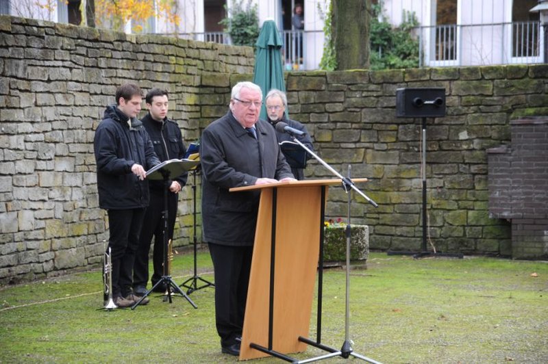 Bürgermeister Steingröver, Herbert Börger und Pfarrerin Cramer sprachen besinnliche, mahnende und erinnernde Worte im Bezug auf die deutsche Geschichte.