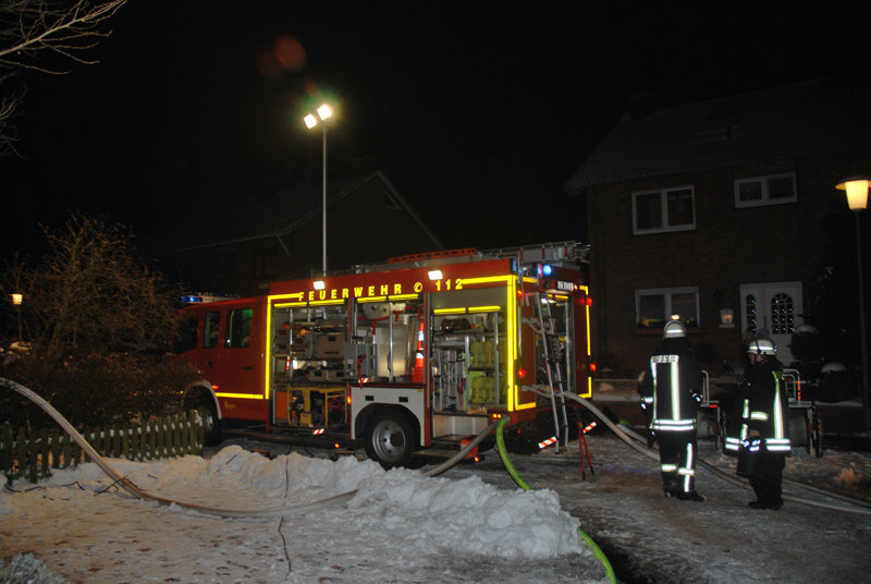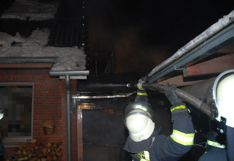 Trotz Schnee und Eis mit den entsprechenden Auswirkungen war das Feuer schnell unter Kontrolle und ein Übergreifen auf das Wohnhaus konnte somit verhindert werden. Die Nachlöscharbeiten waren recht umfangreich, so dass der Einsatz erst nach gut zwei Stunden beendet war.