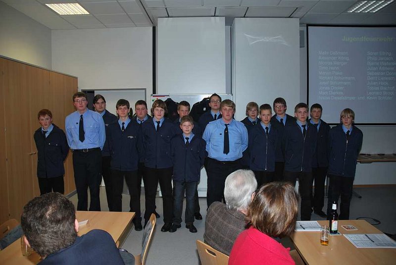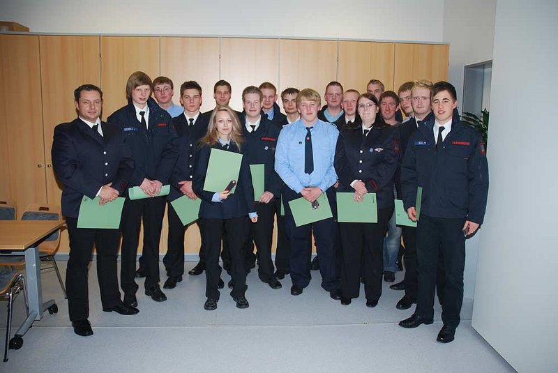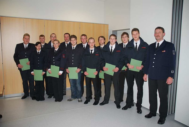 Für die Abnahme der Jugendflamme NRW Stufe I verlieh Heiner Löpmeier 20 Kameraden der Jugendfeuerwehr das verdiente Abzeichen.