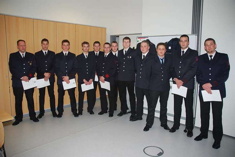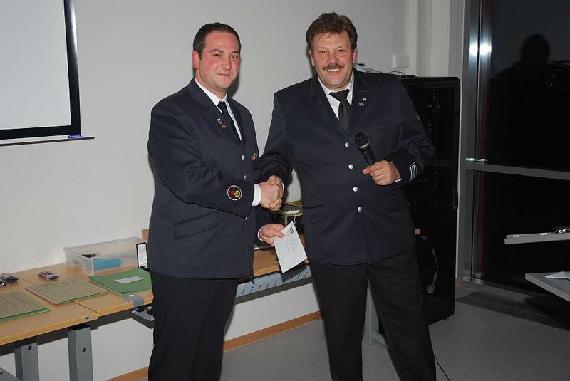 HBM Thomas Kerk verlas den Bericht des Leistungsnachweises 2009 und an die teilnehmenden Kameraden wurden die entsprechnenden Urkunden und Leistungsabzeichen ausgegeben.