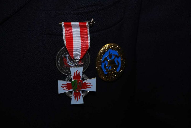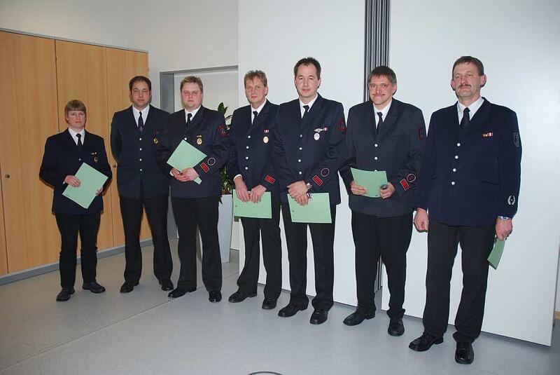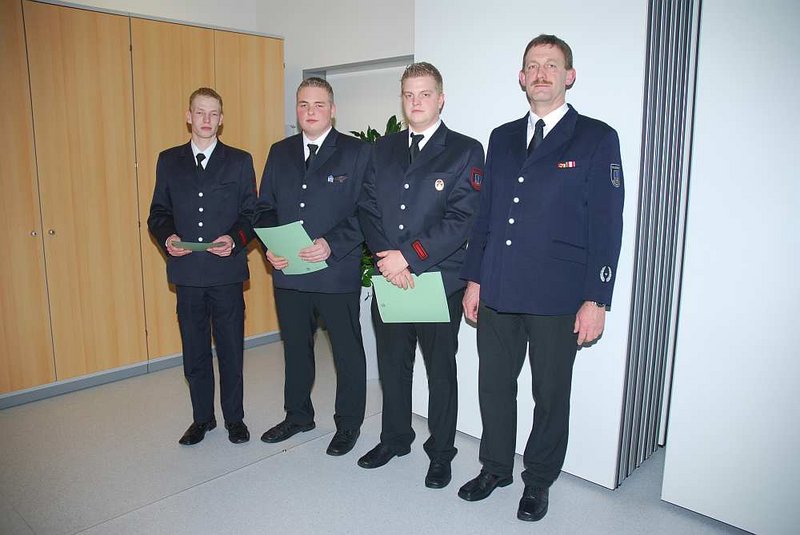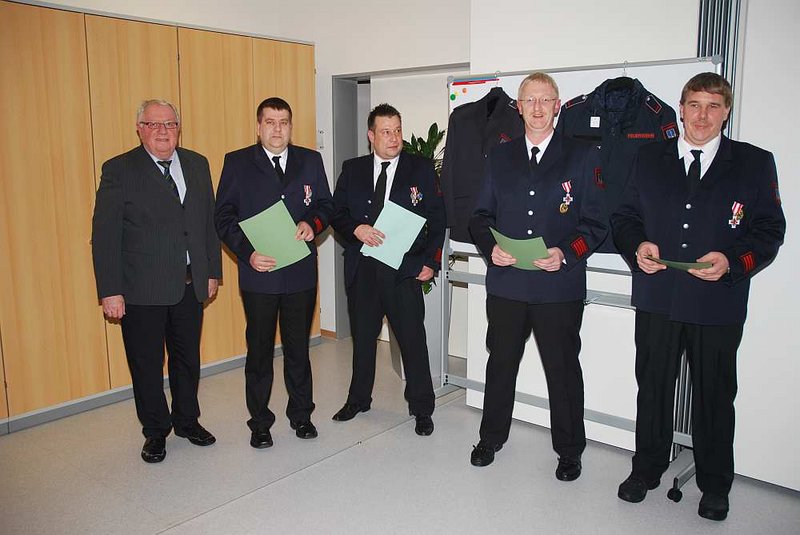 Das Feuerwehrehrenzeichen in Silber, für 25-jährige Tätigkeit im Feuerwehrdienst, erhielten die Kameraden Jürgen Leißing, Thomas Dierkes, Reinhard Klostermeier und Markus Stegemann.