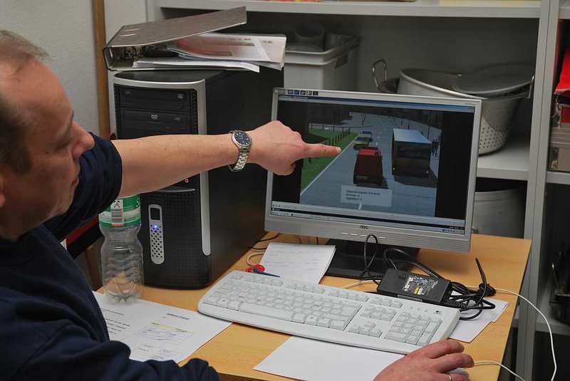 Im Anschluss daran geht es in die Praxis. Nachdem jeder Teilnehmer eine leichte Einweisungsfahrt absolviert hat stehen ihm zwei Übungsphasen mit steigendem Anspruch von Einsatzfahrten bevor. Nach jeder Fahrt wird diese mit den Teilnehmern anhand einer Aufzeichnung beurteilt und ausgewertet.