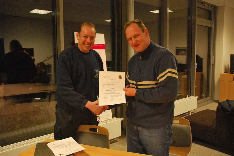 Nach der anschliessenden Trainigsauswertung und einer Abschlussbesprechung wurden die Zertifikate an die Lehrgangsteilnehmer durch den Ausbilder BI Scholmeyer ausgegeben.