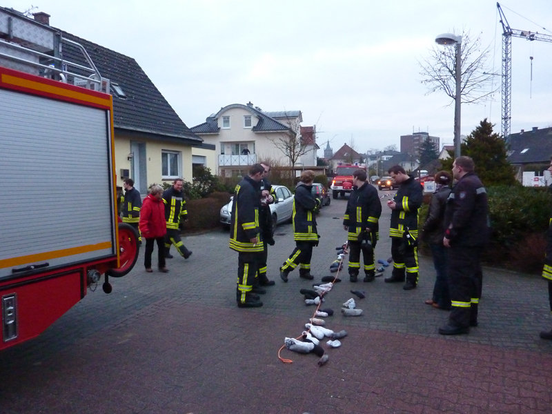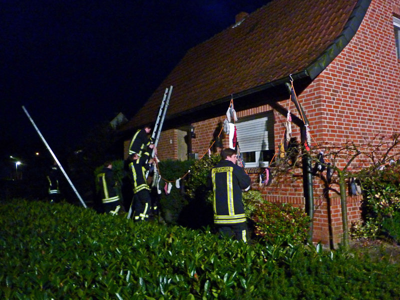 -ust- Am Freitagabend ging es dem 25-jährigen Kameraden Jan Plake ans Dach: da er immer noch nicht verheiratet ist, wurde durch die Feuerwehr Ibbenbüren der obligatorische Sockenkranz zum elterlichen Anwesen gebracht.