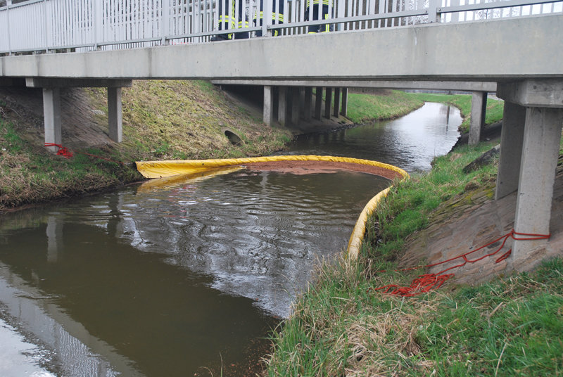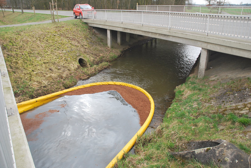 Auf einem Teilstück der Ibbenbürener Aa war ein leichter Ölfilm gemeldet worden. Nach Erkundung des betroffenen Bereichs wurde in Höhe der St.-Josef-Straße eine Ölsperre mittels Ölsperrschlauch errichtet.