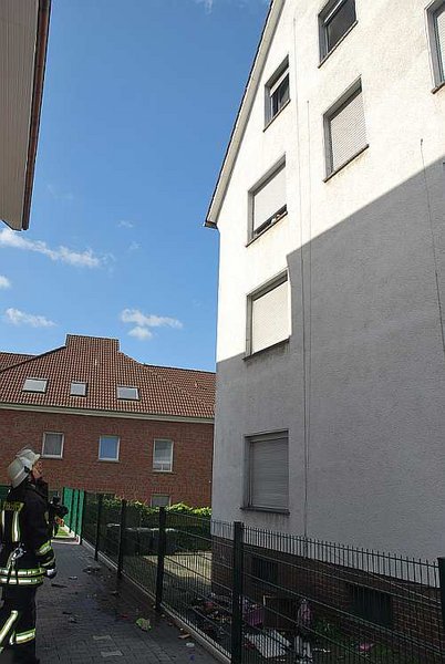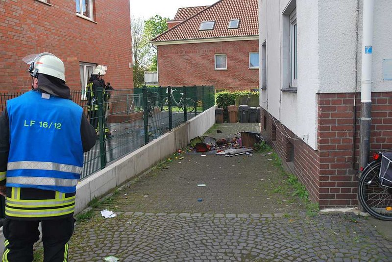 Abgelöschtes Brandgut wurde teilweise durch ein Fenster in die Einfahrt neben dem Haus oder mittels Schuttmulden nach draußen verbracht.