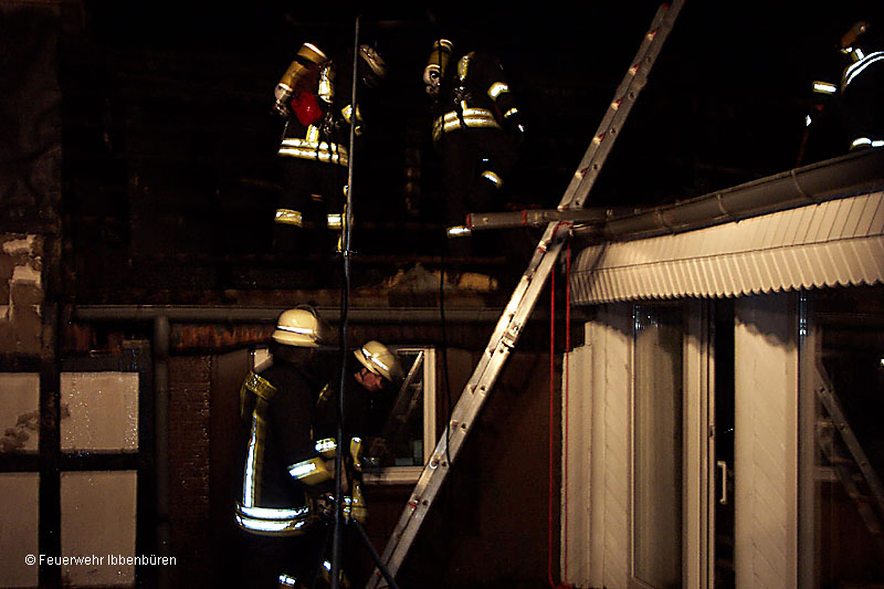 Der Löschzug Stadtmitte 2 der Feuerwehr Ibbenbüren wurde am Mittwoch um 17:13 Uhr zur nachbarschaftlichen Löschhilfe zu einem Wohnhausbrand in Mettingen, an der Schwarzen Straße, alarmiert.Dort brannten der Anbau und ein Teil eines Wohnhauses. Das Feuer wurde von den Mettinger Kameraden bei schwieriger Wasserversorgung bekämpft.