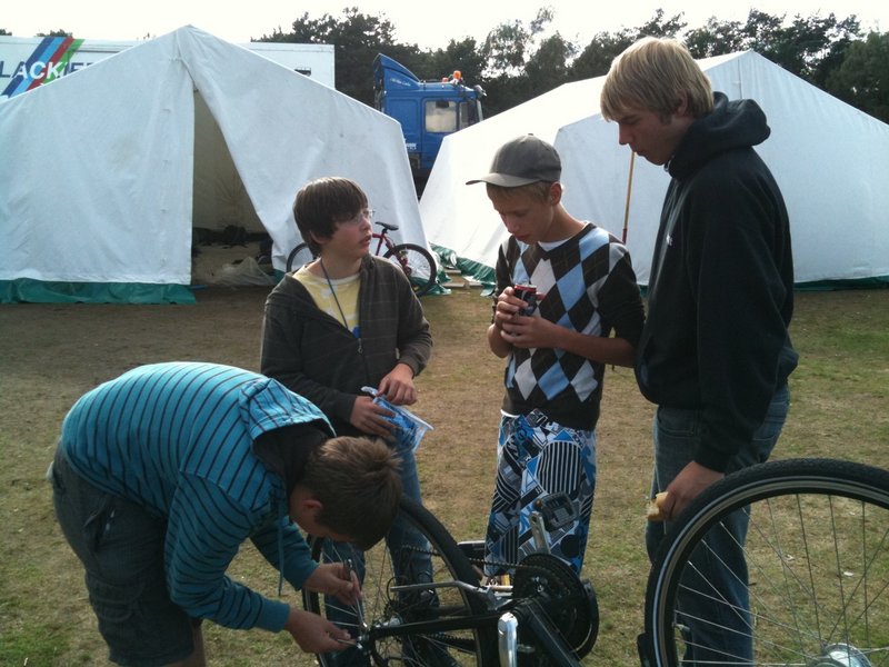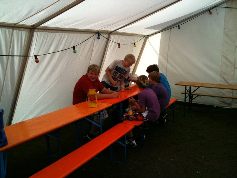 Während des Abendessens erreichte uns ein Unwetter ungeahnter Güte. Starkregen und Sturmböen verwandelten das Zeltlager in kürzester Zeit in eine Schlammwüste. Ein kleiner Bachlauf (Little Sunshine River) bahnte sich seinen Weg durch die Schlafzelte und durchquerte letzten Endes noch ein Betreuerzelt. Der kurzfristig einberufene Krieseninterventionsstab unter der Leitung von Herrn Schoppe nahm seine Arbeit direkt auf, quartierte die Geschädigten in andere Zelte um und bereinigte die missliche Lage mit allen zur Verfügung stehenden Mitteln.