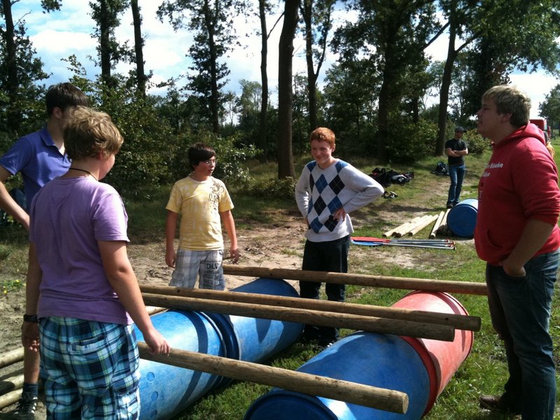Durch zwei niederländischsprachige Trainer wurden die in sechs Mannschaften eingeteilten Mitglieder der Jugendfeuerwehr Ibbenbüren in die Kunst des Floßbauens eingeweiht.