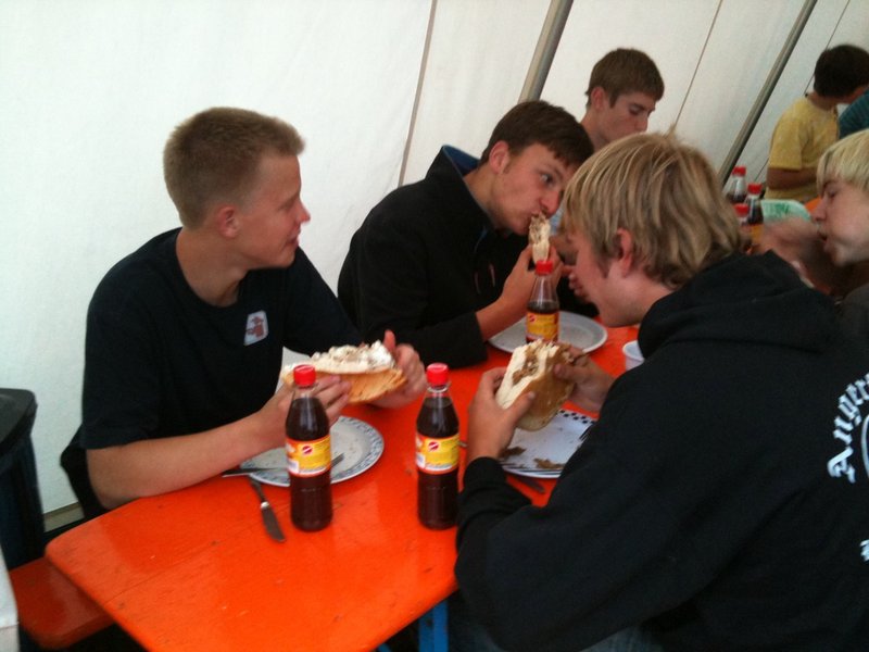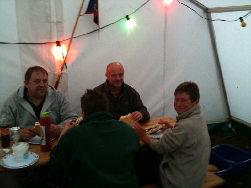 Am Abend war dann unser Leiter der Feuerwehr, Heiner Löpmeier, nebst Gattin im Zeltlager zu Gast. Nach dem gemeinsammen Abendessen (Gyros-Pita, aus eigener Herstellung!) verbrachten wir einen geselligen Abend im Kreise der Kameraden ...