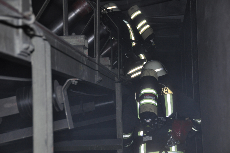 Übungslage war ein Feuer im Förderbandbereich mit einer vermissten Person.