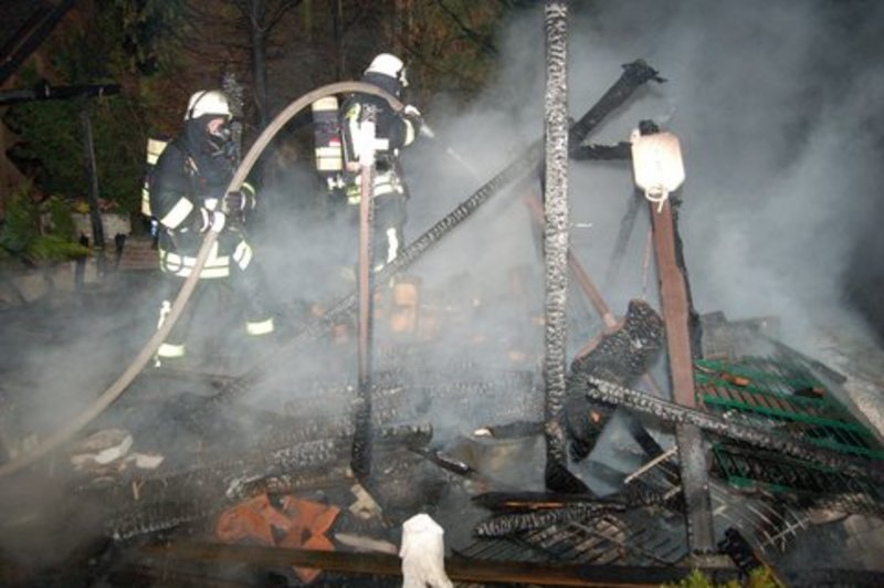 Tatsächlich stand dort ein Carport, in dessen hinterem Teil Holz gelagert wurde, in Vollbrand.