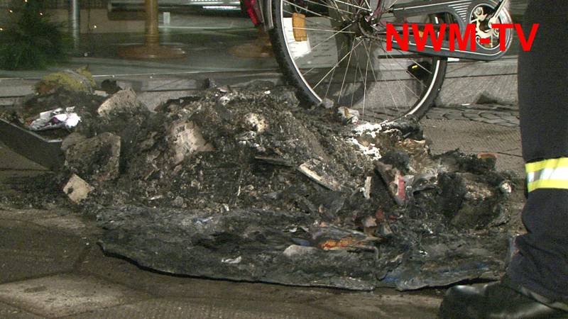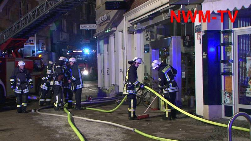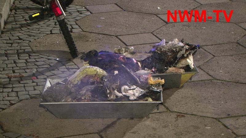 In der Großen Straße (Fußgängerzone) war in einem Wohn- und Geschäftshaus im Zugang zum Kellerbereich ein Brand ausgebrochen. Es brannten im Flurbereich zwei Mülltonnen in voller Ausdehnung. Ein Trupp unter Atemschutz löschte den Brand mit einem C-Rohr ab und entdeckte eine in der Nähe stehende Gasflasche.