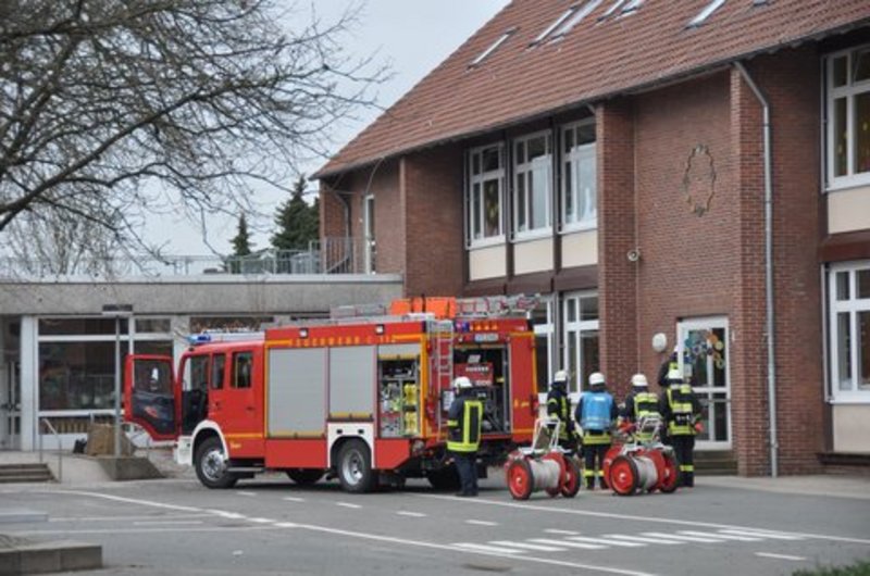 -ms- Bei Eintreffen der ersten Einsatzkräfte war die Schule schon evakuiert. Ein Angriffsrupp ging unter Atemschutz zur Kontrolle in den Keller vor.