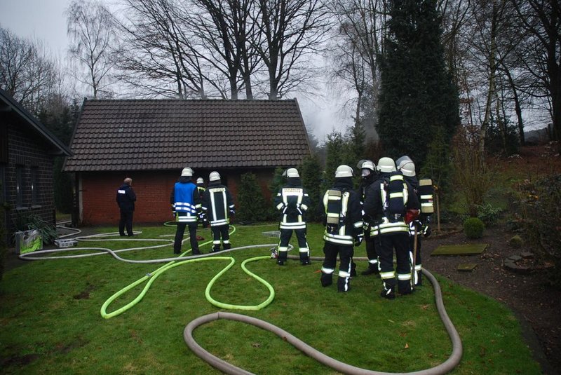 Bei Eintreffen der ersten Kräfte stand der Gartenschuppen in Vollbrand und drohte durch den Dachstuhl zu schlagen.