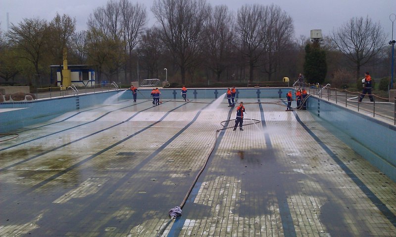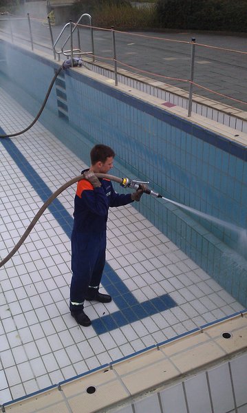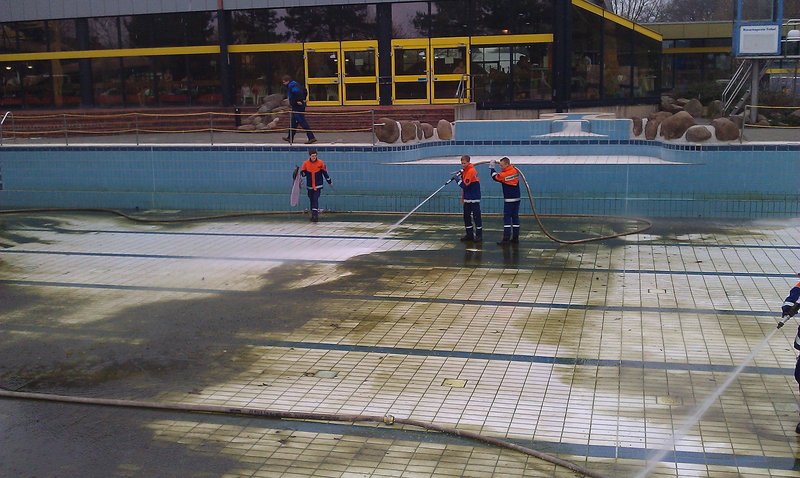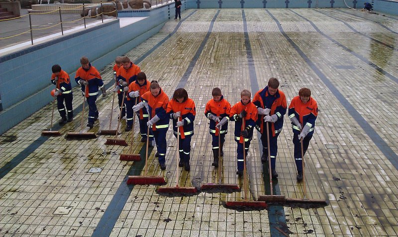 -ms- Am Sonntagmittag rückte die Jugendfeuerwehr Ibbenbüren mit 22 Kameradinnen und Kameraden zum Aaseebad Ibbenbüren aus. Die Freibadsaison 2011 steht wieder vor der Tür und das Außenbecken des Aaseebades bedurfte einer ausgiebigen Grundreinigung.