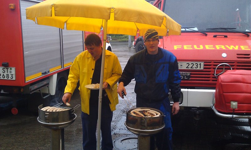 Nachdem die Arbeiten nach drei Stunden beendet waren bedankten sich die Mitarbeiter der Aaseebades mit Grillwürstchen und kalten Getränken für den geleisteten Einsatz und luden die Jugendfeuerwehrmitglieder herzlich ein auch in diesem Jahr das ein oder andere Mal zu schwimmen zu erscheinen.