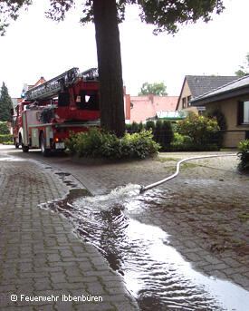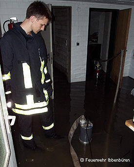 Der Löschzug Stadtmitte 1 der Feuerwehr Ibbenbüren wurde am Sonntagmittag, um 12:43 Uhr, zur technischen Hilfe alarmiert. Im Gebiet "Merschwiesen" waren nach heftigen Regenfällen der letzten Stunden etliche Keller vollgelaufen.In den Straßen "Merschwiese", "Am Forsthaus" und "Eichengrund" waren jeweils mehrere Wohnhäuser betroffen, wo das Wasser zum Teil über eine halben Meter hoch im Keller stand. Ebenso war noch die etwa einen Kilometer entfernte Arenbergstraße betroffen.