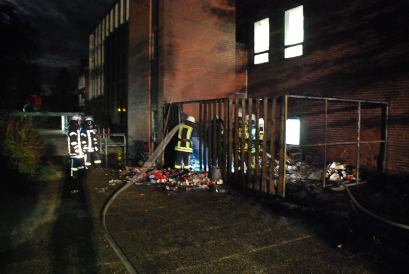 -ust- Die Feuerwehr Ibbenbüren wurde in der Nacht von Montag auf Dienstag mit dem Stichwort "Kleinbrand Schulen, Sperrmüll" zum Goethe-Gymnasium alarmiert. Die ersteintreffenden Kräfte vom Löschzug Stadtmitte 2 fanden dort auf dem Schulgelände eine massives Feuer im Außenbereich vor.