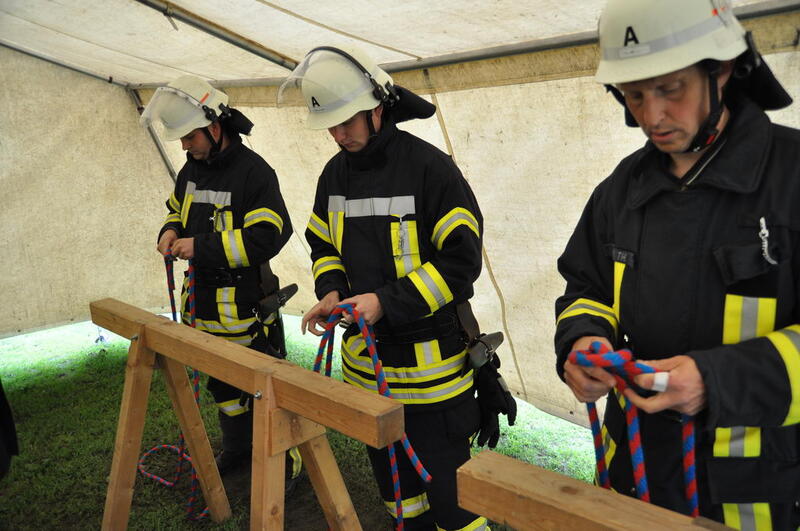 Nach der Anmeldung und Auslosung der einzelnen Positionen in der Gruppe starteten beide Gruppen zuerst mit dem schriftlichen Teil und beantworteten die 30 Fragen fehlerfrei. Danach ging es gleich mit den geforderten Knoten & Stichen weiter. Auch dort konnten beide Gruppen problemlos punkten.
