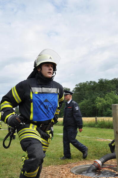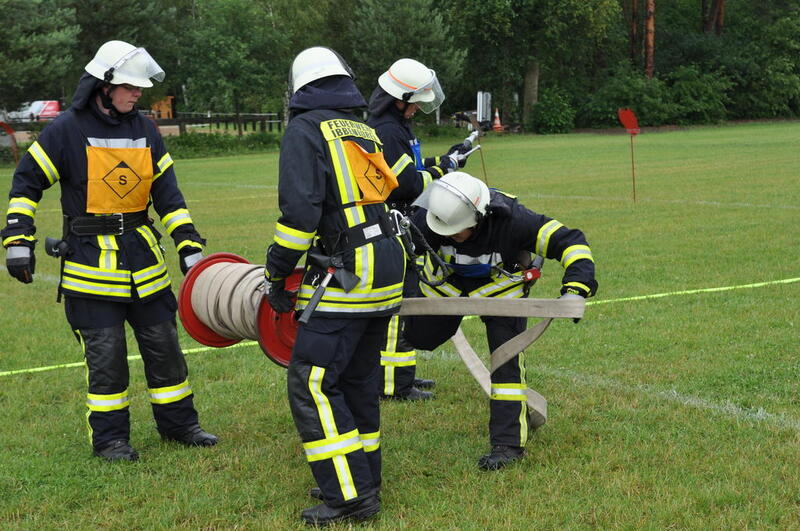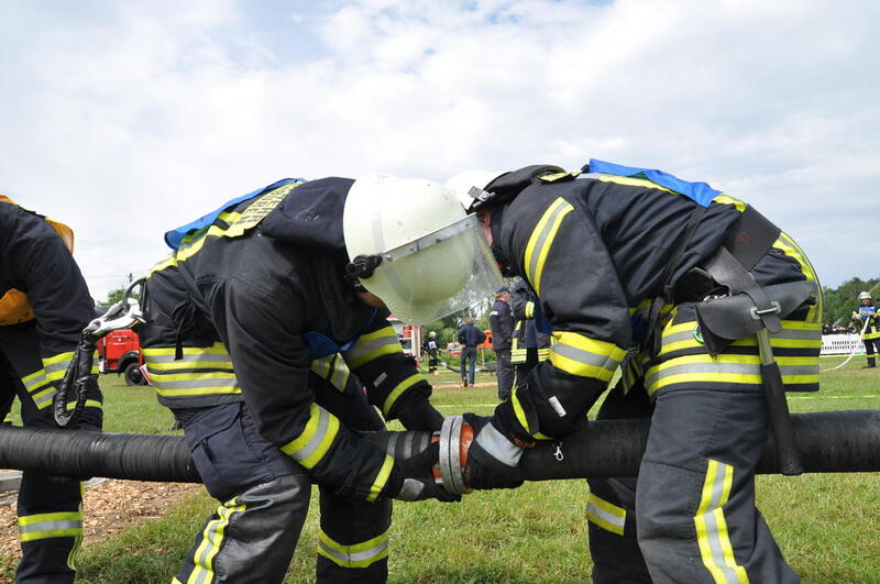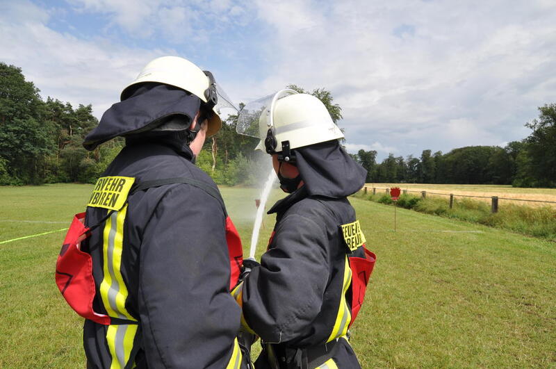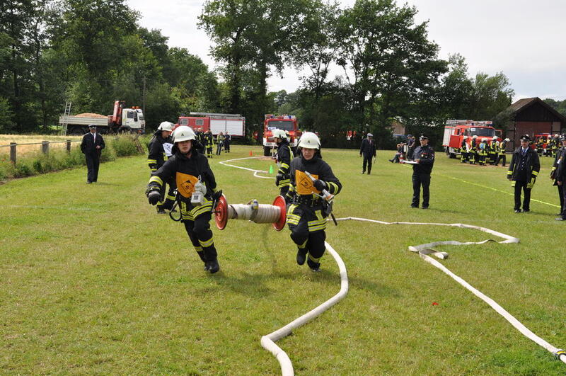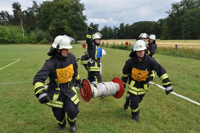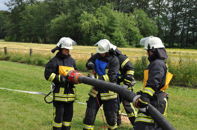Nun stand für beide Gruppen das Vortragen des Löschangriffs nach FwDV auf dem Programm. Beide Gruppen starteten direkt nacheinander und stellten unter Beweis, dass sie die Übung „1 B, zwei C-Rohre“ in ordentlicher Zeit und fast fehlerfrei beherrschen.