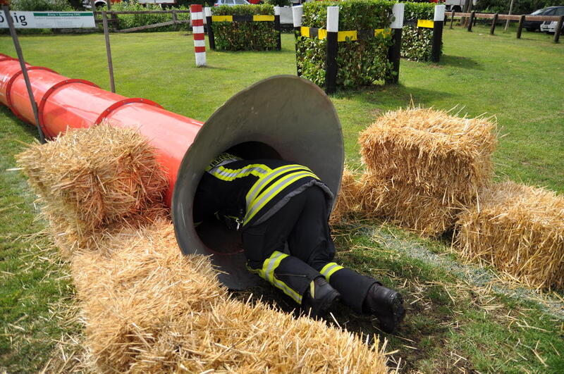 Nun musste nur noch der sportliche Teil absolviert werden. Ein Staffellauf, an dem alle neun Gruppenmitglieder teilnehmen, und neben der zu laufenden Strecke auch drei Hindernisse – eine Wand, ein Balken und eine Röhre – zu bewältigen haben.