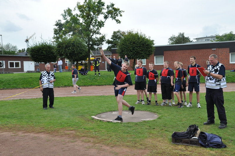 Beim Kugelstoßen muss auch jeder der Gruppe alles geben, um die Gemeinschaftsleistung in die Punktewertung zu bringen.