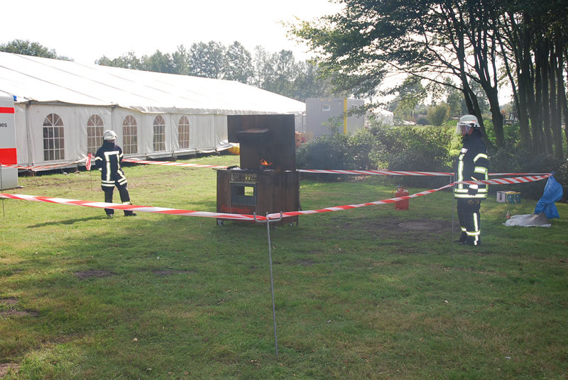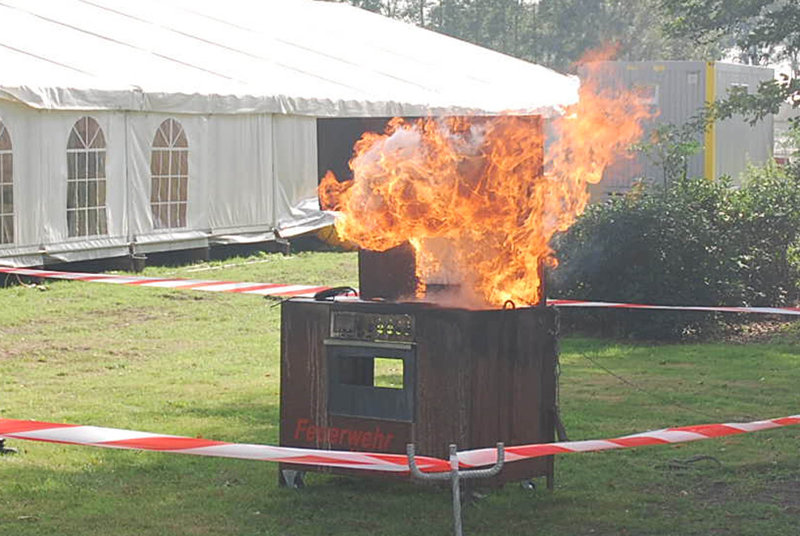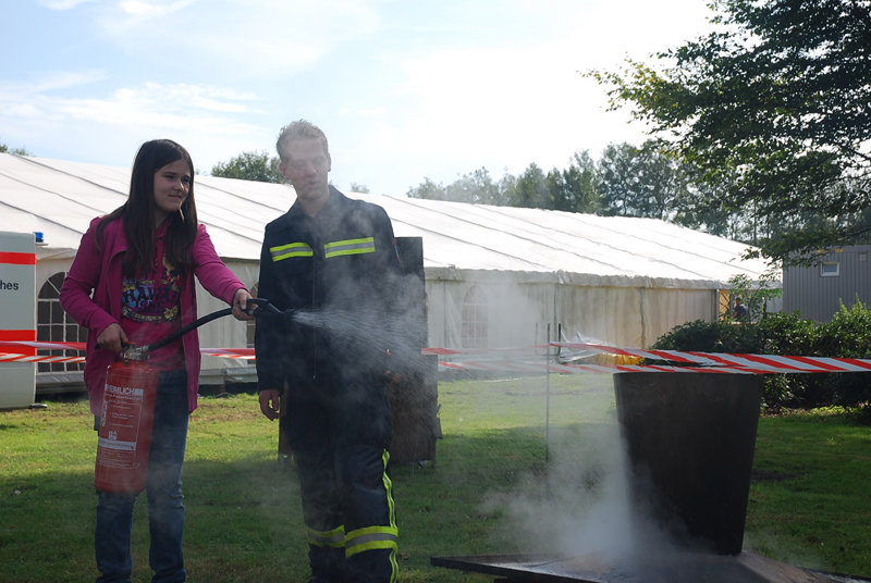 Interessierte Besucher konnten sich dort bei stündlichen Vorführungen einer Fettexplosion aufklären lassen und nebenan mit Übungsfeuerlöschern gleich selbst aktiv werden.